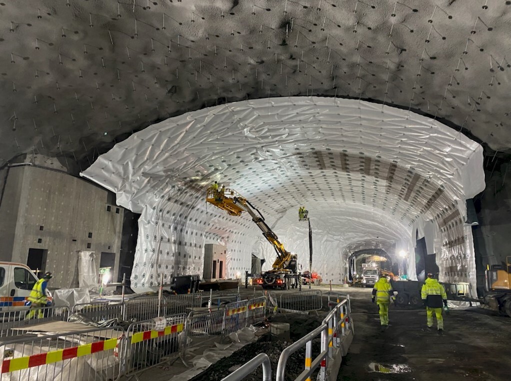 Det monteres over 60 000 m² med Oldroyd-membran i fjellhallene. Leveransen omfatter også montasjemateriell, inkludert RoadRunner armeringsstoler, distansehjul produsert av 100 % resirkulert havplast og PE-lokk for avslutning mot betongkonstruksjoner. Med dokumentert levetid på over 120 år er anlegget sikret mot vanninntrenging langt inn i neste århundre.